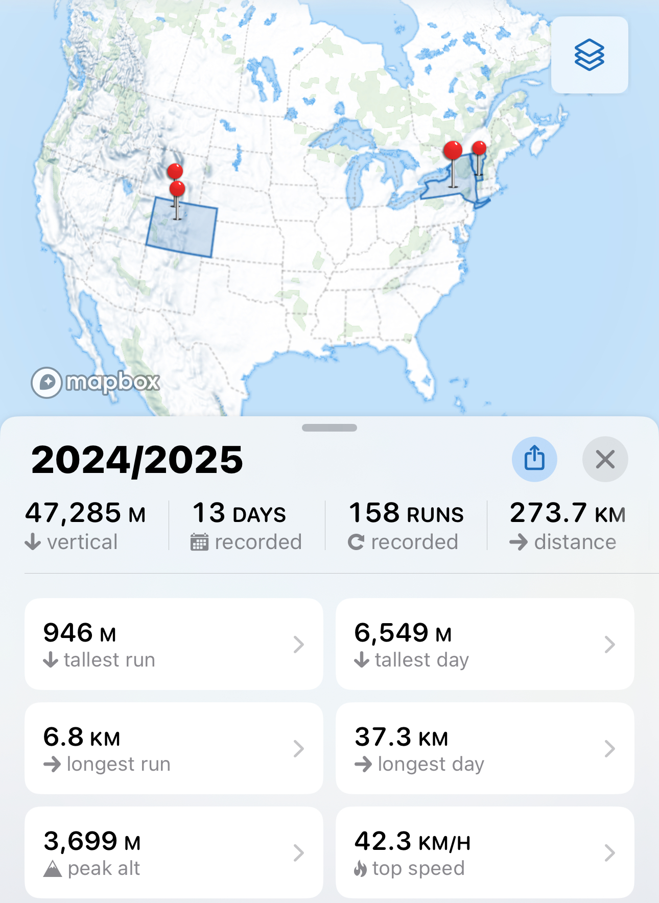 本来想着2024已经是漂泊的一年,但没想到2025坐的飞机竟然比2024还多,大部分都是开会和滑雪的出行。今年因为还在美签有效期内,所以得以去欧洲走了一趟,第一次踏入英国的土地去拜访了一个在爱丁堡的老朋友,然后又去伦敦玩了几天感受了一把回国的城市生活。北美大部分时间在东西岸来回飞,不过加起来也去了十几个城市;今年比较惊喜的是SLC和DC,都是第一次去就爱上的城市,也许是因为这两座城市都有湖,再加上我去的时候天气都很好,所以有特别的好感。