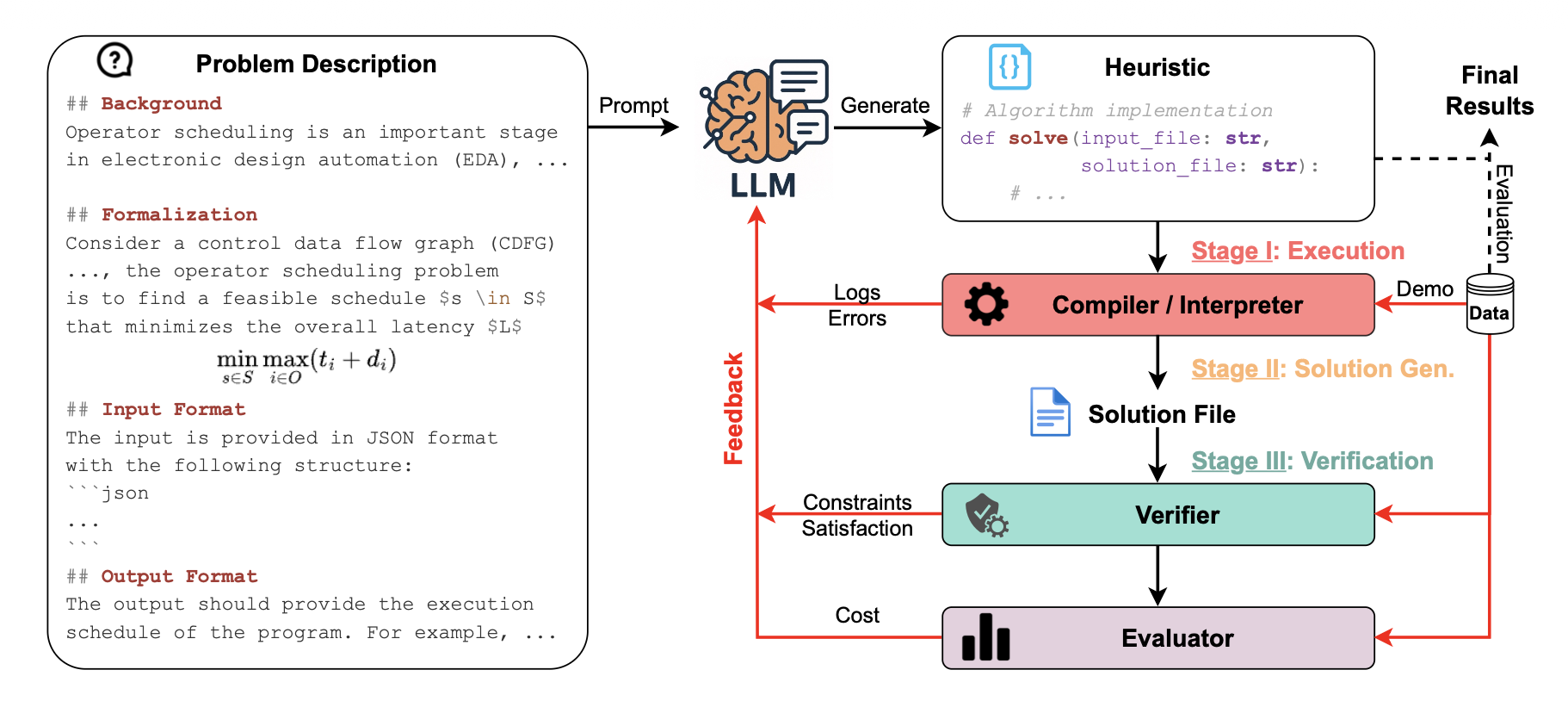 Hongzheng Chen, Yingheng Wang, Yaohui Cai, Hins Hu, Jiajie Li, Shirley Huang, Chenhui Deng, Rongjian Liang, Shufeng Kong, Haoxing Ren, Samitha Samaranayake, Carla P. Gomes, Zhiru Zhang, “HeuriGym: An Agentic Benchmark for LLM-Crafted Heuristics in Combinatorial Optimization”, International Conference on Learning Representations (ICLR), 2026.