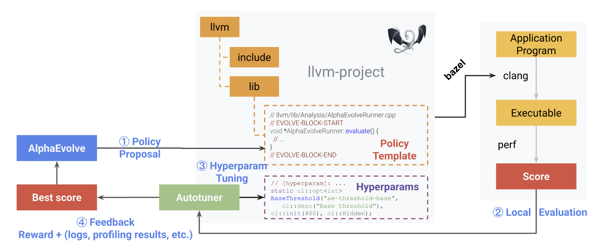 很高兴这次能跟 DeepMind AlphaEvolve team 合作将 AI 里两个经典的范式 search 和 learning 推向更多领域。AlphaEvolve在去年五月发布的时候引起一阵轰动,那时更多还是关注在经典的数学算法问题上;而这次我们则是成功将其大规模应用到工程领域,让狗家的编译器开启自我进化之路。